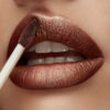 O bastão do brilho labial permite que a textura seja distribuída de forma precisa e impecável. partindo do centro dos lábios e avançando para fora.